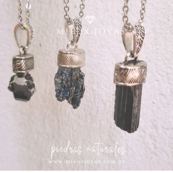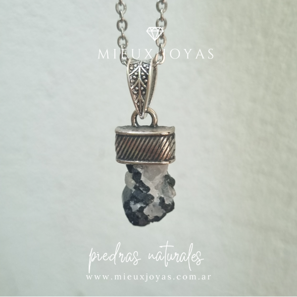Dije de turmalina en bruto con cuarzo cristal, incluye cadena de acero